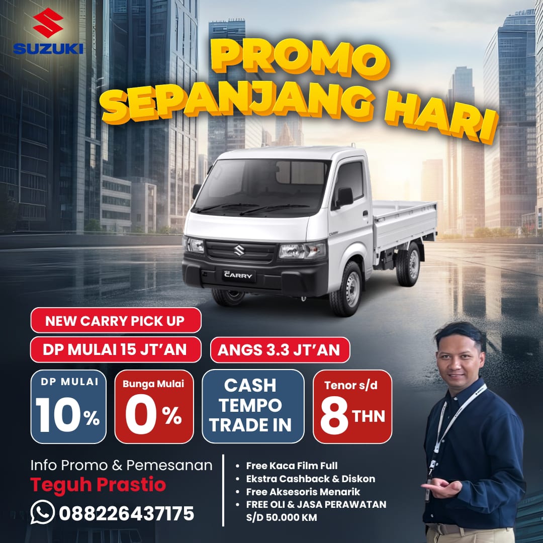 Promo terbaik untuk anda yang berencana Kredit Suzuki Carry Pick UpPromo ini sudah pasti sangat menguntungkan untuk anda, apalagi dengan promo DP super murah dan anda sudah bisa kredit dengan bunga ringan.